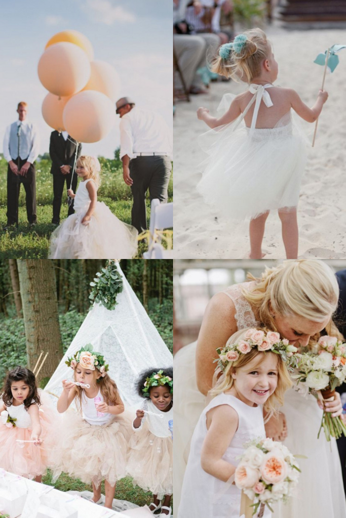 The role of flower girl is typically for an adorable young girl ages three to eight, most commonly a young relative of the bride or groom. What's her primary role? Aside from looking darling as ever, of course, she needs to be the opening act of the bridal procession. She usually comes after the ring bearer (if there's one) or before the maid of honour, scattering petals down the aisle. Modern variation of the traditional petal toss would be to scatter confetti or candies, and carry a small bouquet or flower pompom.